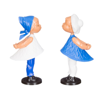 Kussende poppetjes! Hoogte ca. 8,5 cm. Van kunststof met magneetjes. Klik op de foto voor meer foto's. Zet de poppetjes iets van elkaar af, door de magneetjes buigen ze zich naar elkaar toe en kussen ze elkaar.