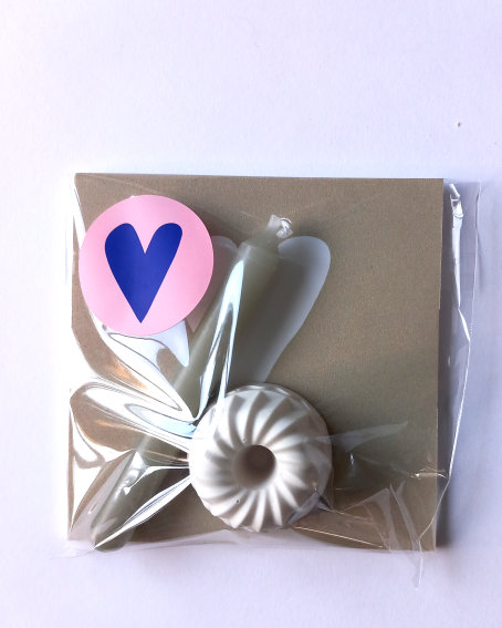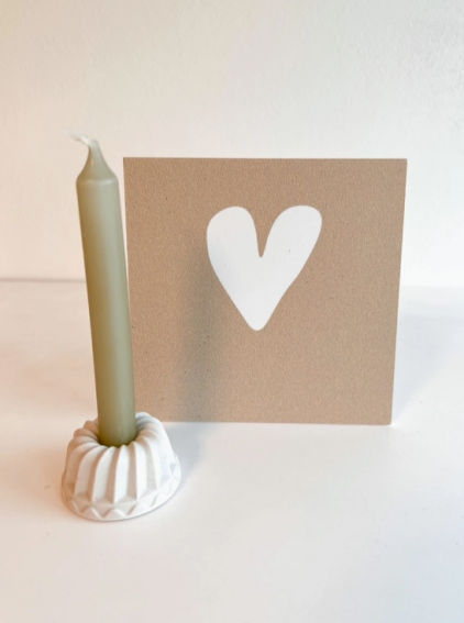 In dit pakketje zit een Forex bordje van 10,5x10,5 cm, een kaarsje en een kandelaar van gips.