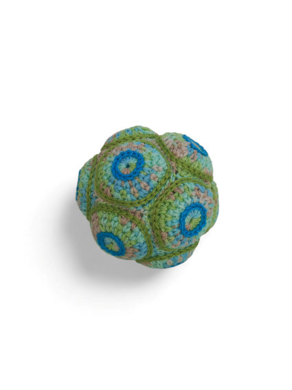 Handgemaakt van 100% gemerceriseerde katoen, met een belletje erin. Doorsnede ca. 10 cm.