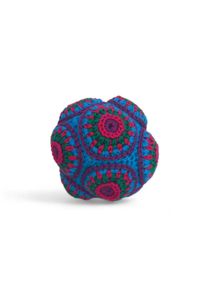 Handgemaakt van 100% gemerceriseerde katoen, met een belletje erin. Doorsnede ca. 10 cm.