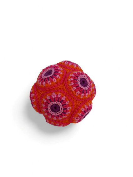 Handgemaakt van 100% gemerceriseerde katoen, met een belletje erin. Doorsnede ca. 10 cm.