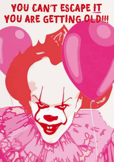 Kaart Pennywise you can't escape IT met IT a.k.a Pennywise is gedrukt met risograph op 300 grams Gmund papier . En uitermate geschikt voor iedere horror liefhebber. Deze leuke verjaardagskaart is te grappig en zal zeker bij iedere ontvanger een smile op zijn/haar gezicht toveren.
