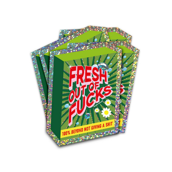Breng een frisse lading attitude in je dag met deze sprankelende Fresh out of fucks glittersticker! Vormgegeven als een retro groene waspoederdoos met de hilarische subtekst 100% beyond not giving a shit, is deze sticker perfect voor iedereen die klaar is met gedoe en het graag luchtig (en eerlijk) houdt.